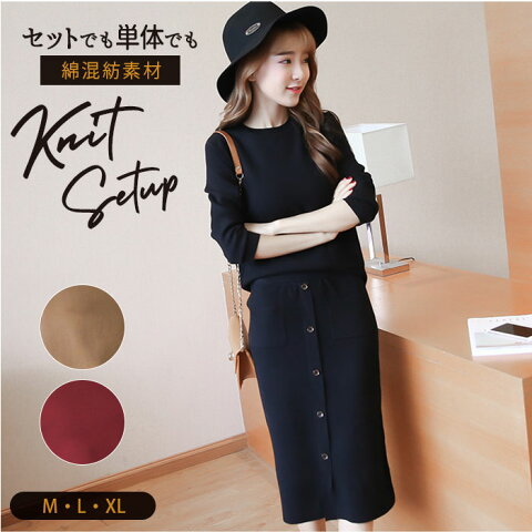 セットアップ レディース ニット 通販 秋冬 カジュアル スカート きれいめ セーター 長袖 クルーネック ロングスカート タイト ミモレ丈 タイトスカート 通勤 大人 かわいい コットン スカートスーツ